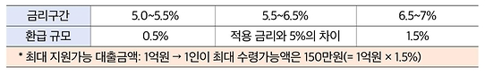 · 대상 : (2023.12.31일 기준) 사업자대출을 받은 개인사업자 또는 법인 소기업으로서 금리 ‘5% 이상 7% 미만’ 적용받는 자