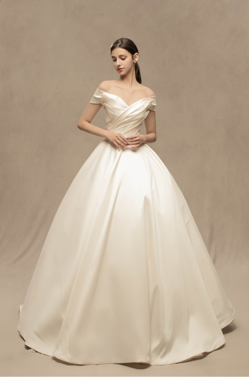 웨딩드레스 고를때 알아두면너무나도 쓸모 있는"실크 웨딩드레스" 종류에요 1. 미카도실크드레스 묵직하고 고급스러운 광택감때문에실크 중에서는 가장 먼저 떠오르고 선호하는 소재에요